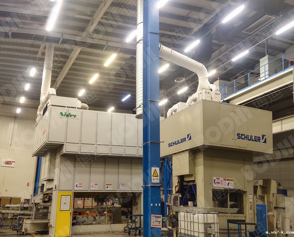 为改善生产环境、实现绿色制造,某金属成型技术企业对两台压机的排风系统进行了改造升级,选用了优米网官网客服电话HCE-200W1(B)静电油雾收集器,单台处理风量达 2000m³/h,实现高效净化与达标排放。